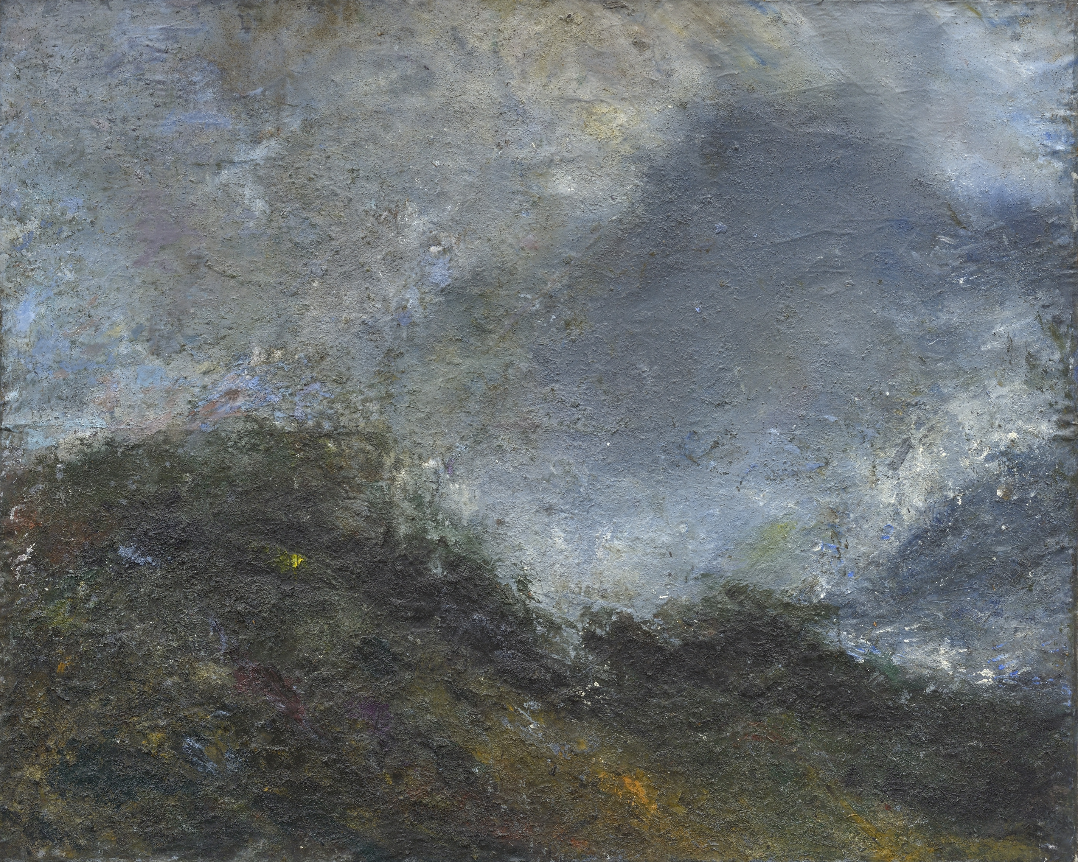 Il y a là des compositions où le contenu semble céder devant la forme. Mais qu’on ne s’y trompe pas, il ne s’agit pas là de représenter un médium, démarche très moderne en peinture, mais de donner à voir tout ce qui peut être ressenti face à l’immensité des montagnes de Bavière ou de Savoie. Il y a donc bien un motif, certes sans focus, mais c’est un motif éclaté sur toute la surface de la toile. Ce sont en effet des forces telluriques qui sont ici en présence et que le médium représente avec réalisme et matérialité.