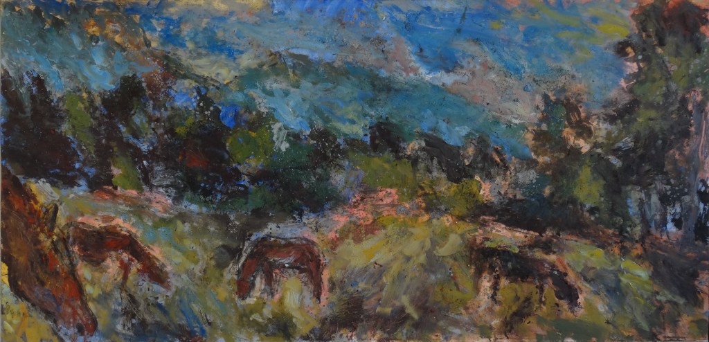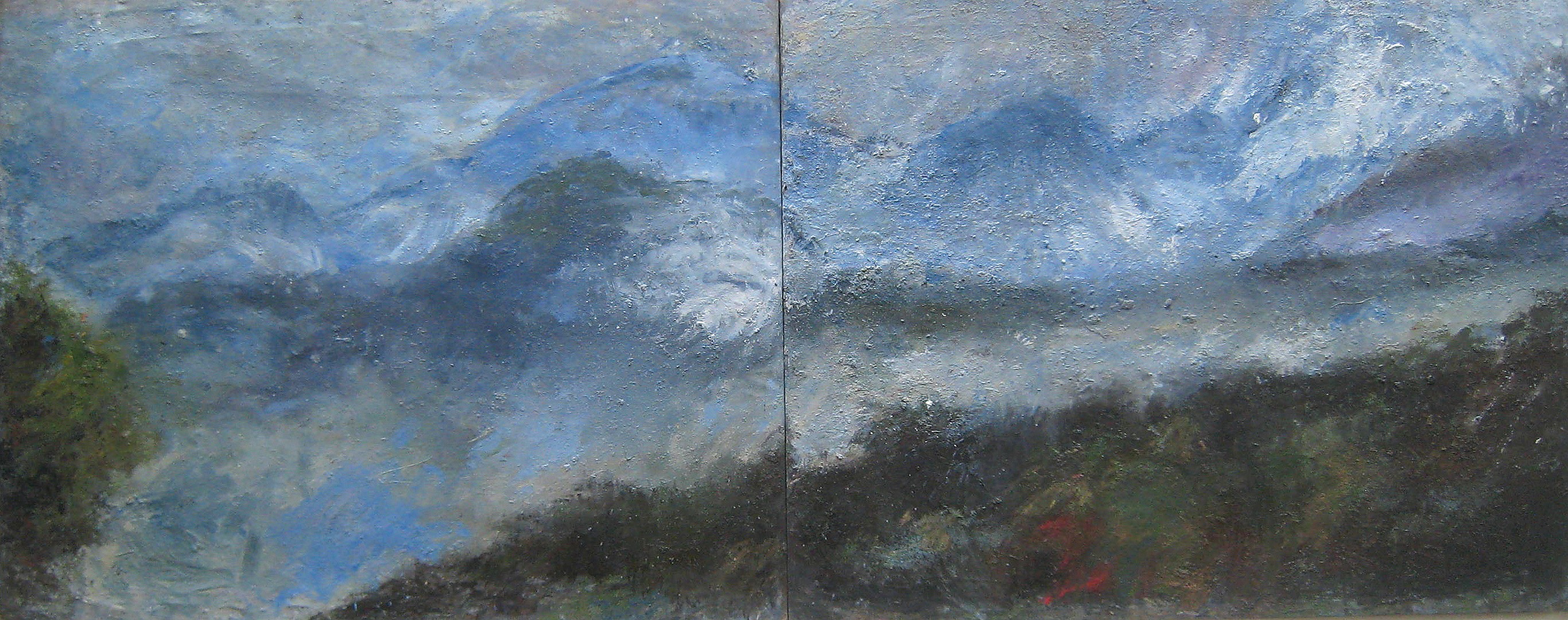 A cela s’ajoute un travail du regard, tant de celui qui peint que de celui qui contemple. L’artiste de paysage doit s’intéresser aux deux. En effet, pour qu’un paysage puisse entrer dans ses yeux (j’aime cette expression que je reprends à Danielle Sallenave qui l’utilise dans La Fraga, pseudonyme de la peintre Mary Gordon dont elle fait le portrait dans ce roman), il doit en percevoir les couleurs, et à lire Vincent Bebert, ou on le prend pour un daltonien, ou on comprend ce qui fait la force du paysage en peinture, ce qui le rend sublime. Une forêt de montagne, ce n’est pas qu’une palette de verts. C’est aussi des mauves, des gris chauds, des blancs réchauffés ou refroidis. Vincent Bebert nous confie comment il a appris à distinguer ces nuances et l’on comprend comment ses paysages de montagnes peuvent devenir océaniques, couplés à des teintes chaudes, sans qu’ils ne soient pour autant crépusculaires.