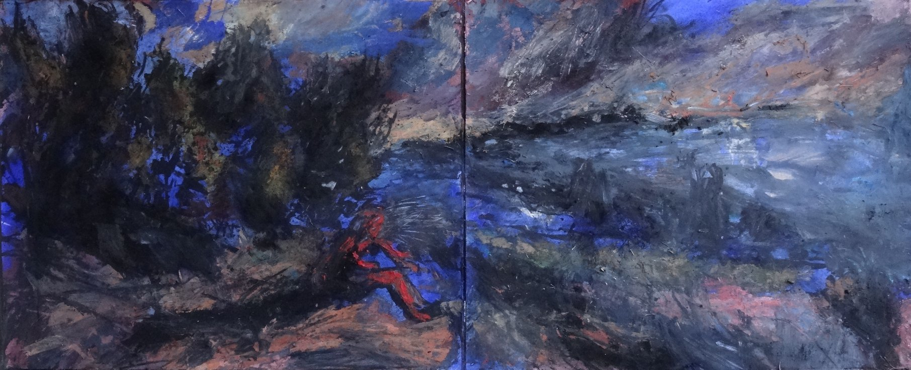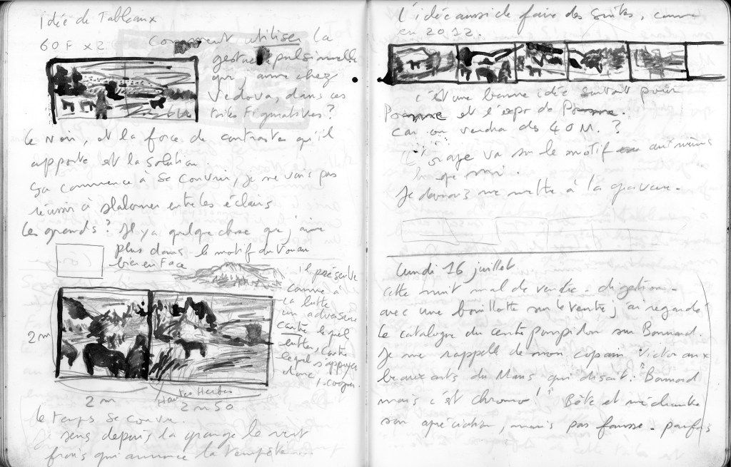 C’est d’ailleurs par ces paysages que j’ai rencontré la peinture de Vincent Bebert. C’était, je me souviens, à la galerie Prodromus, à Paris dans le 11ème, en 2015 très exactement. Ces paysages me rappelaient les marées d’équinoxe de la mer du Nord, ce plat pays qui est le mien, paysage de mon enfance, lieu d’innocence et de liberté, à l’image des éléments qui le composent, éléments qui ne connaissent pas de limites dans leur beauté et leur extravagance, si ce n’est à l’aurore, moment plausible d’accalmie, ou en fin d’après-midi quand le vent tombe.