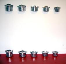 Dès notre entrée sur le scène de cette expo, nous sommes mis en condition à la vue de ces barres parallèles de cocottes minutes : comme un rituel d’ouverture, « Monde sous pression » (Faouzi Laatiris et Batoul S’himi), nous initie à la philosophie de l’endroit. La fonction de l’artiste au coeur de la cité est ici toute trouvée : nous rappeler à l’essentiel et nous ouvrir les yeux sur le fait que nous sommes conditionnés.