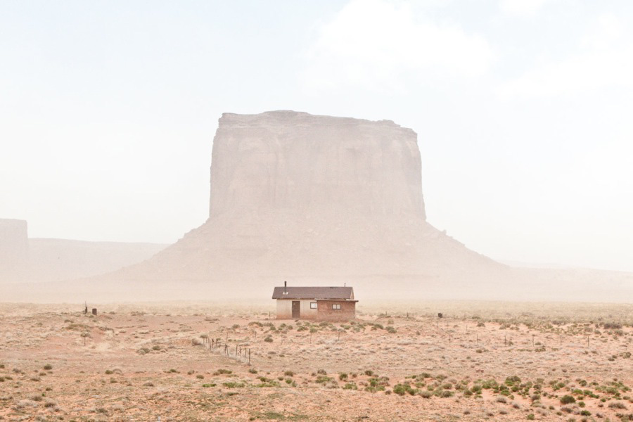 La série intitulée Centered sides nous rappelle quant à elle que l’invention de la perspective est intimement liée à l’avènement de la cartographie. Les paysages de Californie, d’Arizona et du Névada, de par leur ampleur désertique, nous réapprennent à maîtriser le vide, tout au moins l’espace qui le suscite.